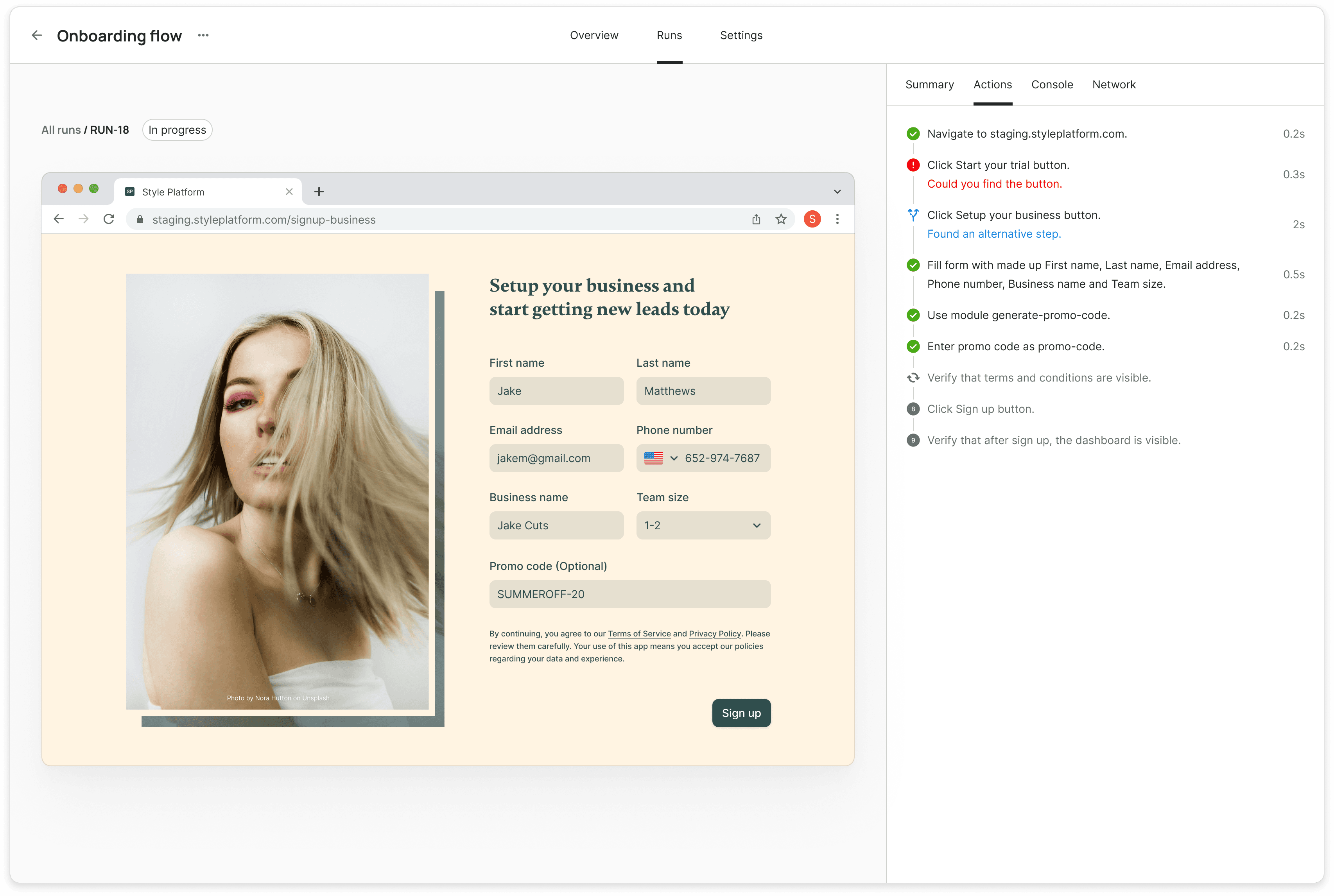 Smart auto-healing keeps your tests stable even through UI changes, timing issues, and flaky selectors.